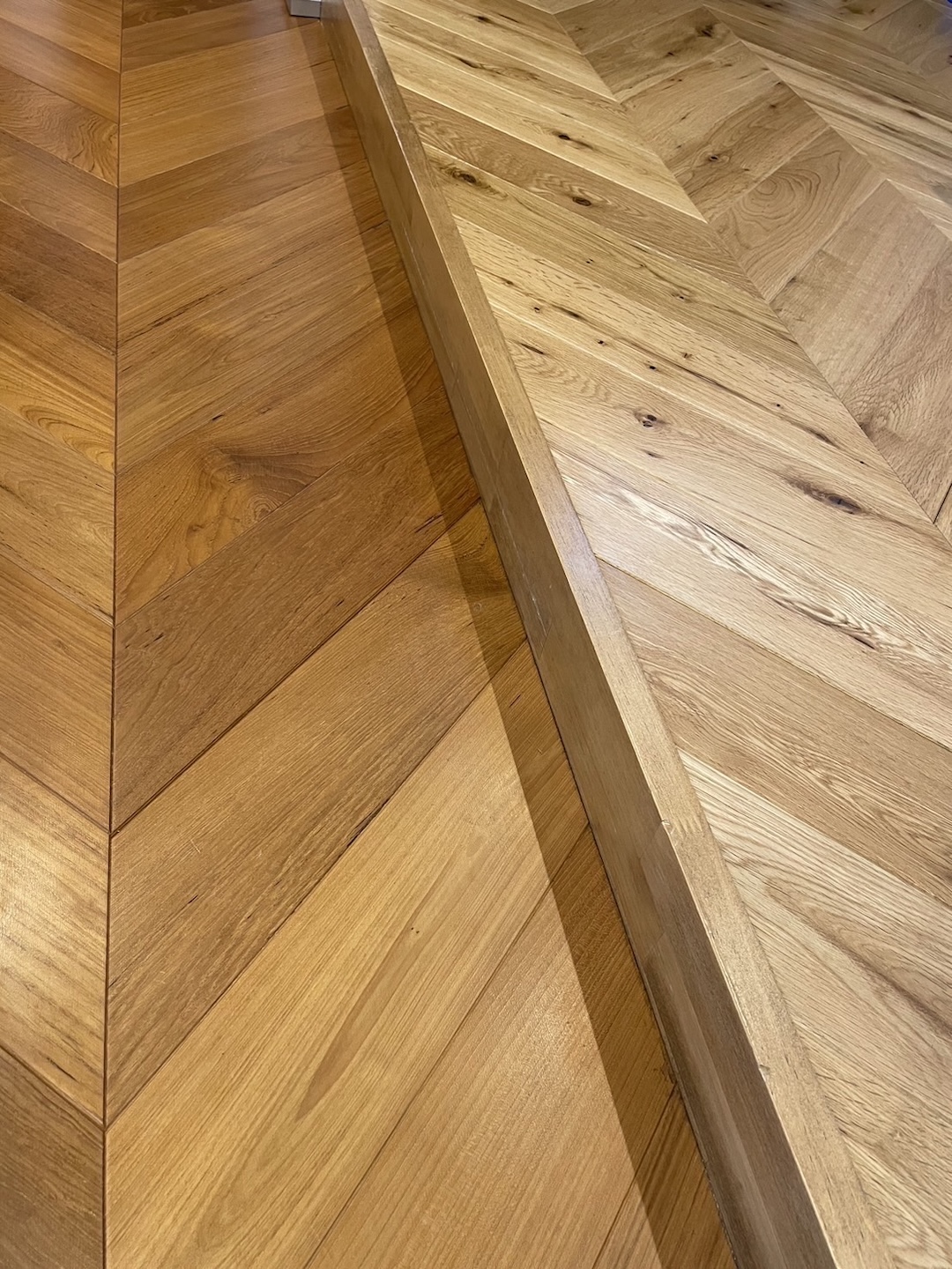 こちらは無垢材を使用した複合フローリングで、天然木特有の美しい質感が「部屋の高級感を高めてくれる」として大人気です♪